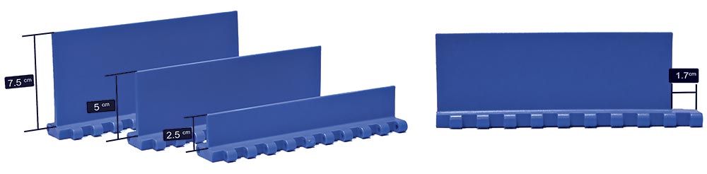 - ابعاد پله: پله ها با سه ارتفاع (5cm/2) "1 ، (5cm) "2 و (5cm/7) "3 و هرکدام با دو مدل لب خالی و لب پر تولید می شوند و نصب این پله ها در فواصل دلخواه امکان پذیر است.