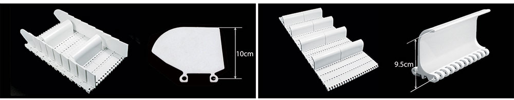 - عمر طولانی و نیرو محرکه دنده ای این نوع زنجیرها و همچنین قابلیت تعویض قطعات این نوع نقاله باعث جایگزینی و انتخاب زنجیرهای مدولار بجای نقاله های تسمه ای مانند لاستیکی و پی وی سی گردیده است.